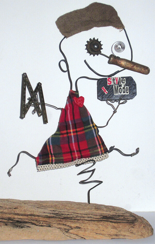 Nicolas Coppin, artiste atypique il donne une seconde vie aux objets cassés, inutilisés, délaissés. Refusant la société du « tout jetable », ses créations artistiques sont réalisées à partir de matériaux et d’objets de récupération. Poète, glaneur de vieilles bricoles, il crée des personnages attachants et truculents, nous racontant ce qu’ils portent en eux de secret.